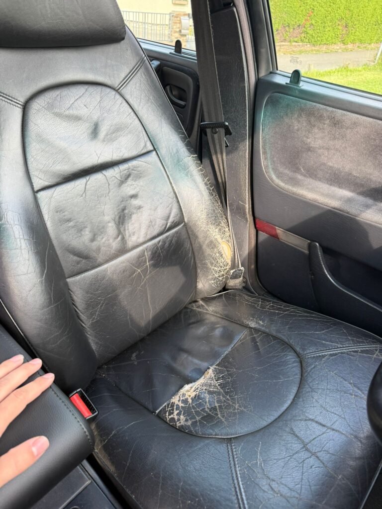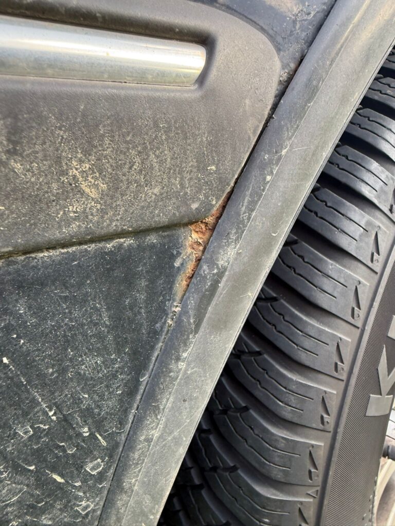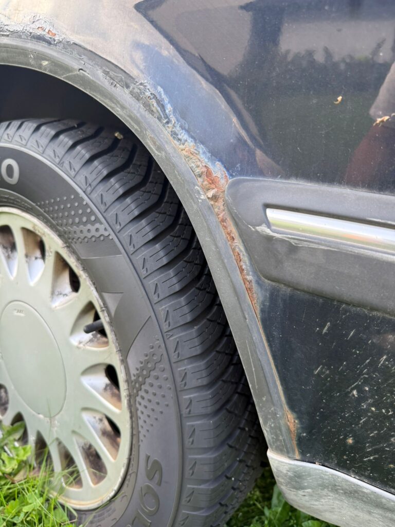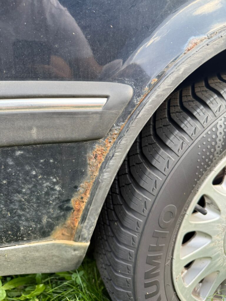 Der Motor läuft rund und schaltet sauber. Allerdings stottert er manchmal bei höherer Drehzahl und selten stirbt er auch ab, wenn er warm ist. Vermutlich ein Problem mit der Elektrik. Er steht jetzt auch schon eine Weile in Knittelfeld, ich hab ihn zwar zwischendurch immer wieder kurz gefahren. Aktuell wird er nicht mehr bewegt, da er kein Pickerl mehr hat. An den Radläufen hat er Rost.